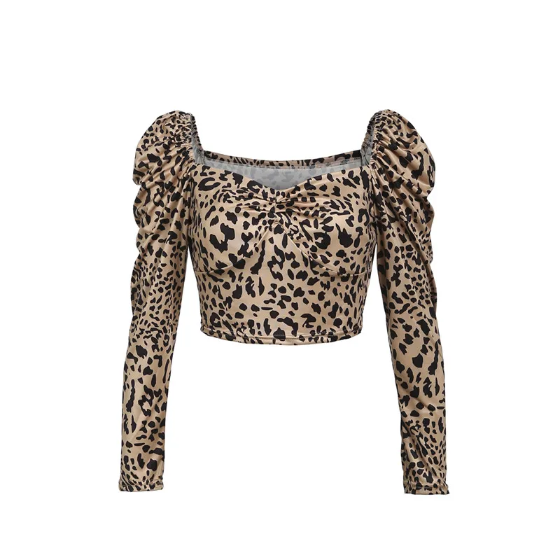 Greatest Sexy Women Leopard Crop Tops Blouse Ladies Deep U Collar Long Sleeve Printing Shirts Pullovers High